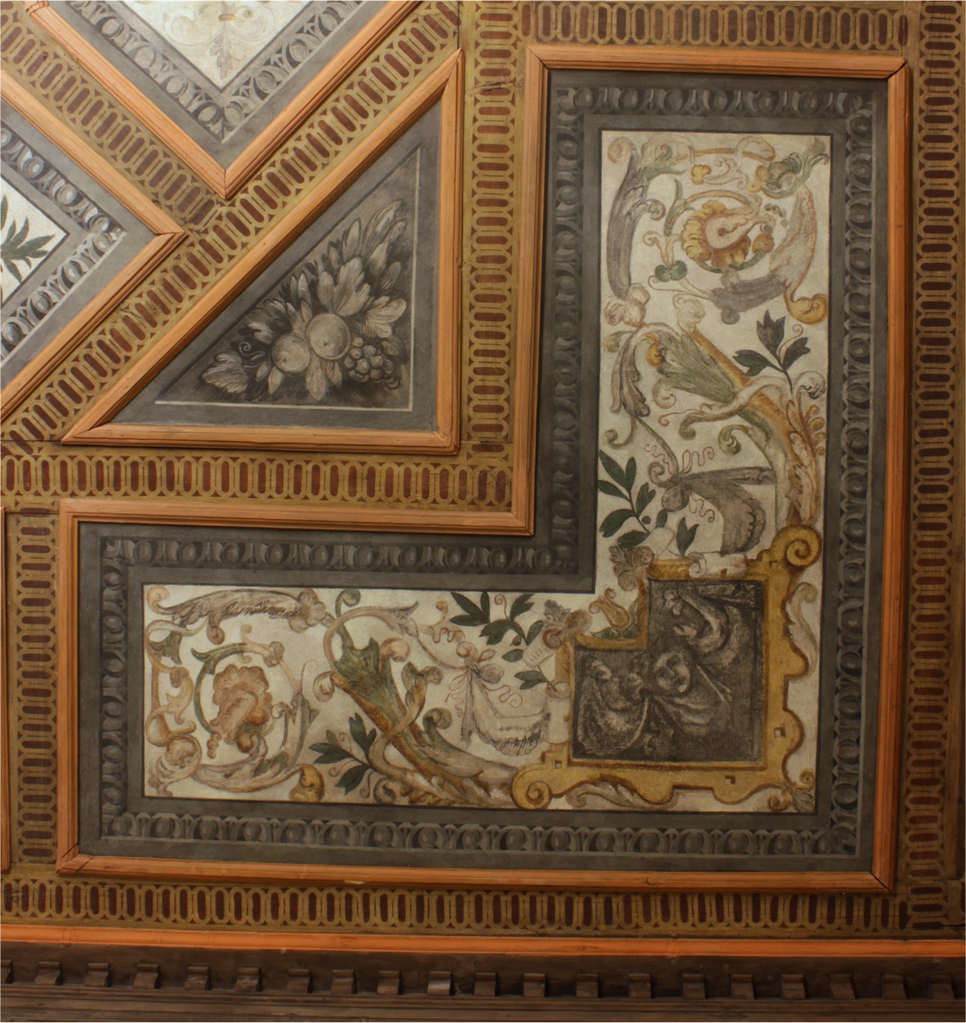 Jedná se o tři nástropní obrazy, které jsou součástí renesanční výzdoby Schwarzenberského paláce v Praze. Obrazy zdobí strop jednoho z výstavních sálů galerie. Plátna jsou instalována do systému malovaných lišt. Obrazy ve středu sálu znázorňují ústřední motivy z Faethónu, postranní části jsou dekorativní. Restaurovány byly tři z obrazů v rohu sálu, které byly poškozeny zateklou vodou. Malba na nich dekorativní, ornamentální. Světlý střed obrazu rámuje vždy ornament vejcovce v odstínech bílé, šedé a černé. Ornament je tvořen typickými renesančními rozvilinami, maskarony, grify a kartušemi.