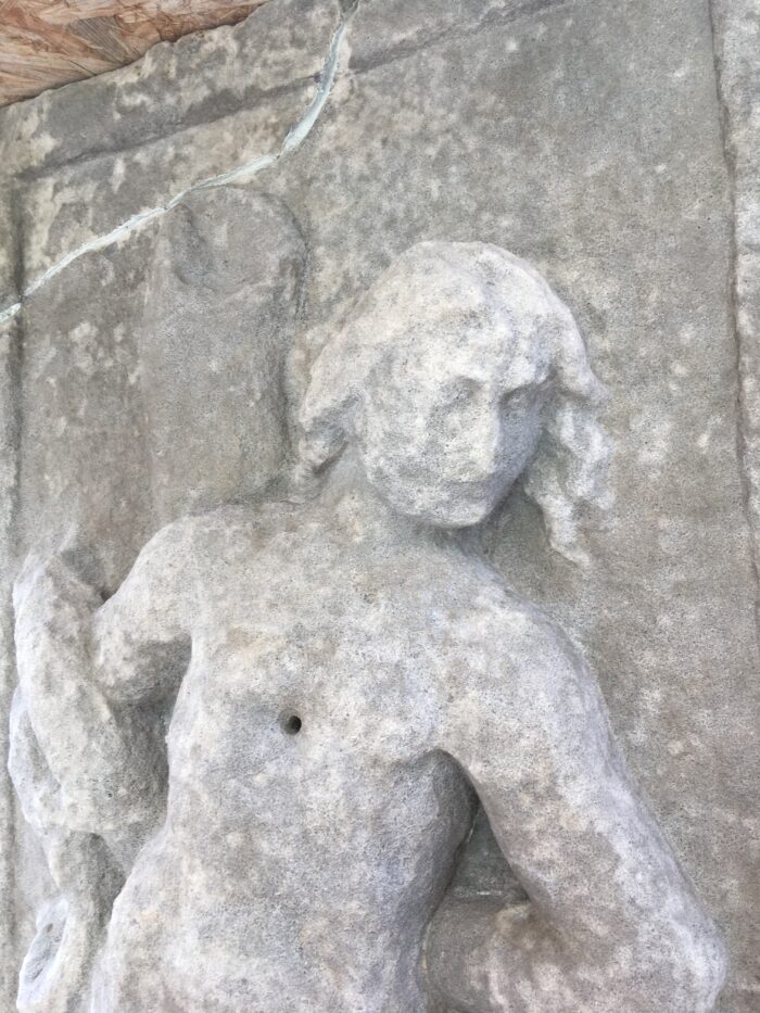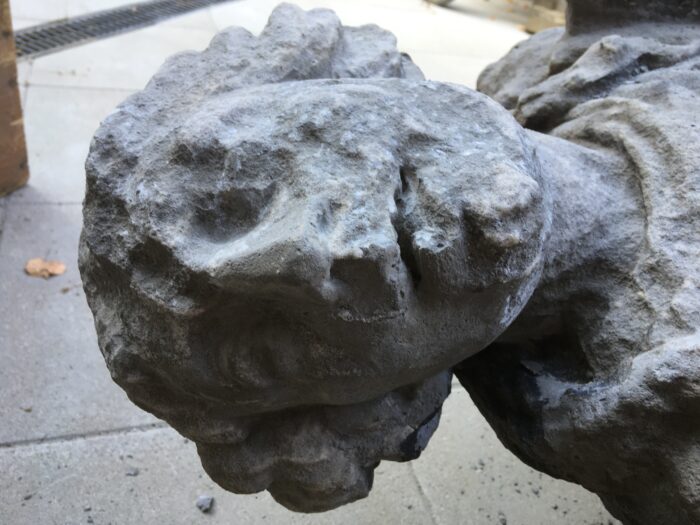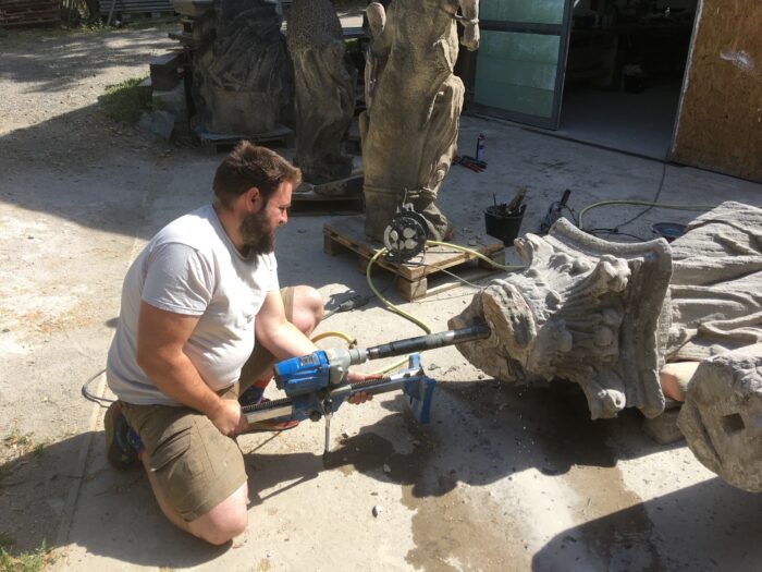 Fotografie v průběhu náročného restaurátorského zásahu a po restaurování.